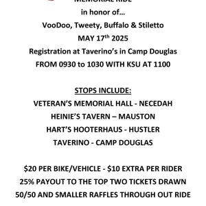 1000-1600 HOURS Registration from 0800 to 1030 Announcements and Opening Ceremony @ 1100 and KSU following ceremony. Drop Zone Bar and Grill 605 Summit Ave Ladysmith, WI 54848